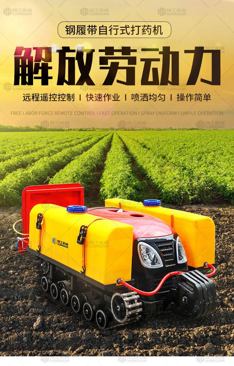 28马力钢履带自走式打药机是专门针对果园开发的新型产品。主机可配装多种机具,可旋耕,除草,开沟,割草,施肥等,适用于各种果园树下的田间管理。省力效率高,节省劳力减轻劳动强度。