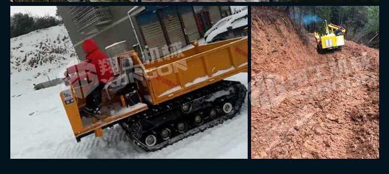 履带运输车是专门提供复杂路况运输工作的机器,适用于普通运输车辆无法或者不适合通行的地方。履带运输车以履带代替了轮式行走,降低了对地面的损伤,同时履带行走装置降低了机器与地面的单位面积压力,适用于山林、田地、沼泽、沙地、草地、雪地以及土质松软或气候条件不太发的接近角和离地角。